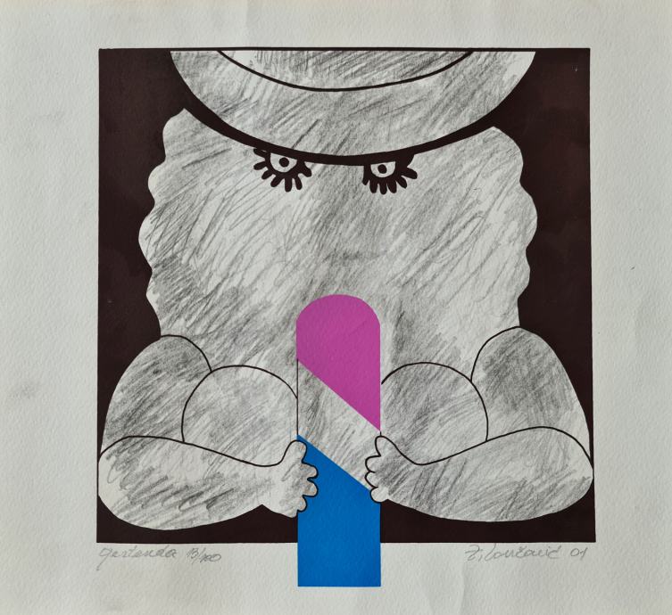 Zvonimir Lončarić "Lizalica" svilotisak olovka 30x35cm; iz 2001. god