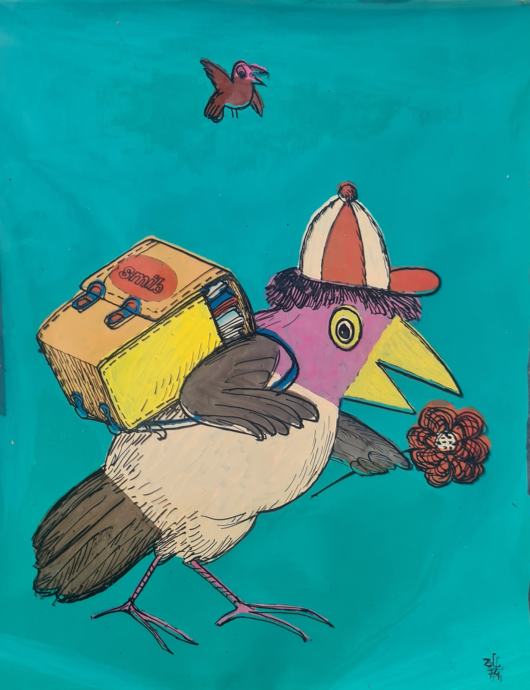 Zvonimir Lončarić Riba "Ptica" tempera na papiru / tuš na foliji 35x30cm, iz 1974;