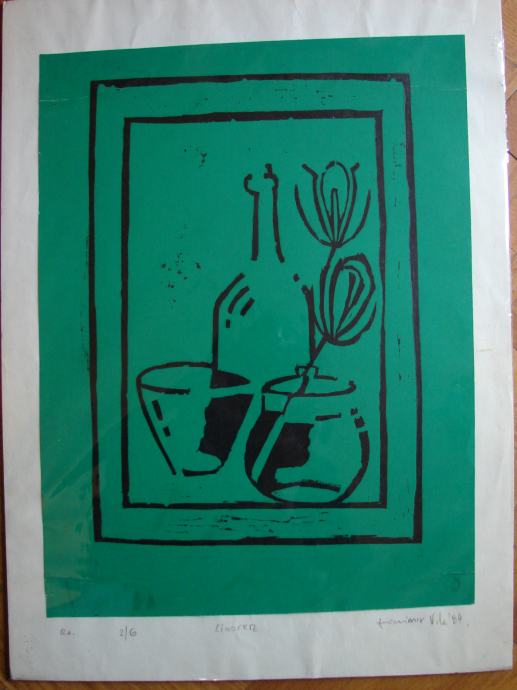 Rijedak linorez iz 1984. poznatog akademskog slikara-grafičara Zvonimira Vile. Potpisano i numerirano (mala serija 2/6) od strane autora. Dimenzije lista grafike su 53,5x39cm.
