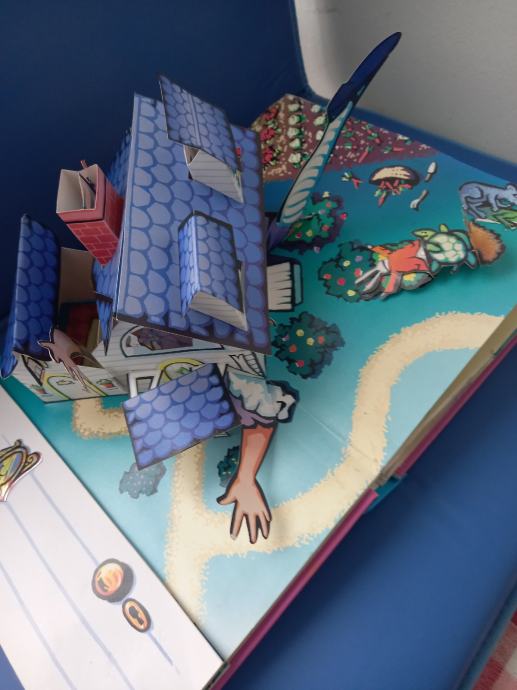 Slikovnica je u dobrom stanju, jedini nedostatak na prvoj stranici fali jedan kartonski dio koji se izvlači u 3D, sve vidljivo na slikama