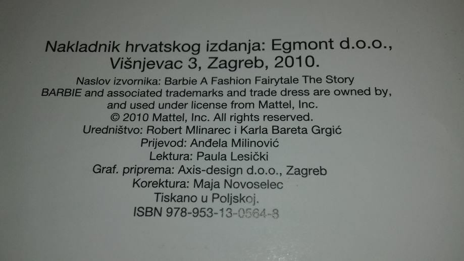 Barbie modna bajka, Egmont - 2010. godina, u nešto lošijem stanju.