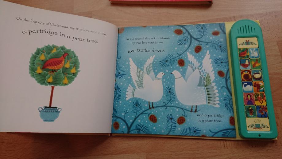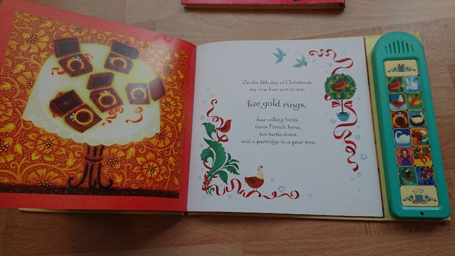 2. The Twelve Days of Christmas (Dvanaest dana Božića) slikovnica na engleskom jeziku sa zvukom, na svakoj stranici se može stisnuti gumbić sa strane da odsvira određeni dio pjesme ili cijelu pjesmu