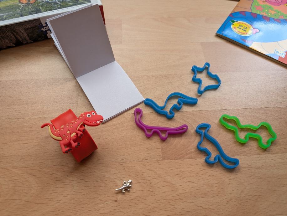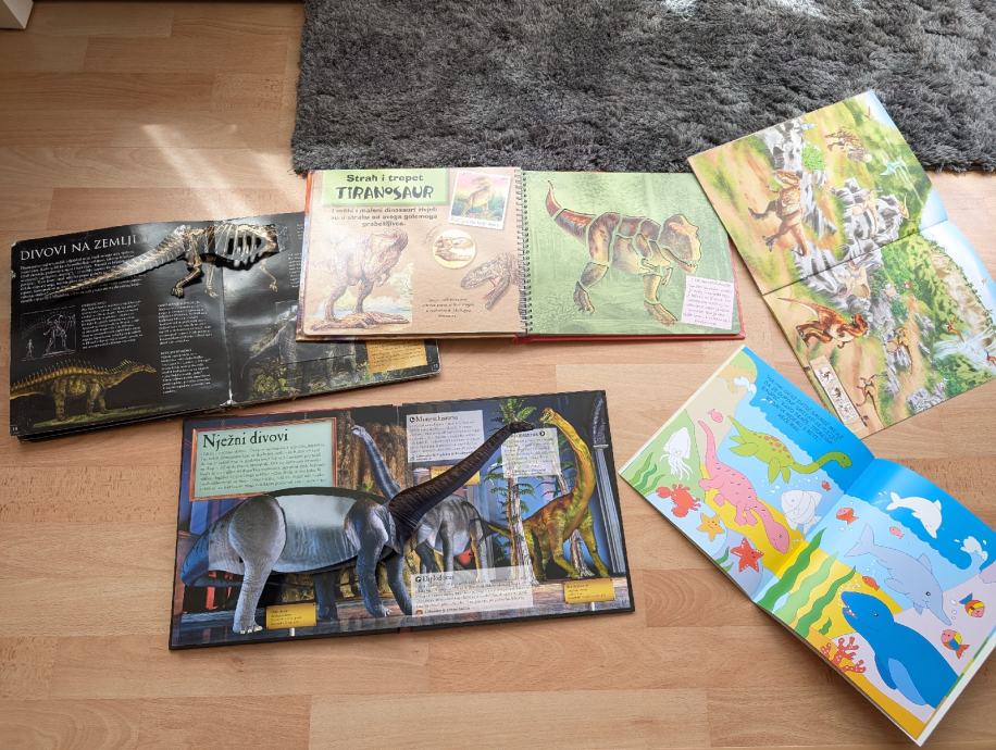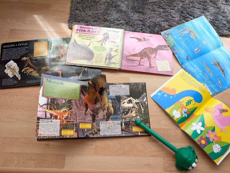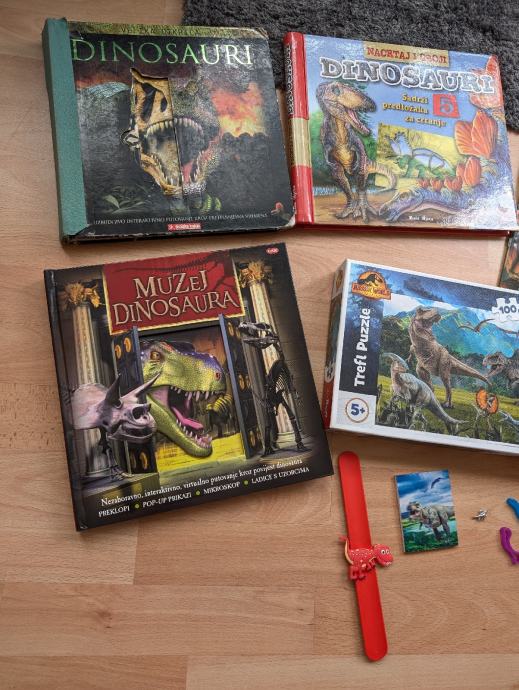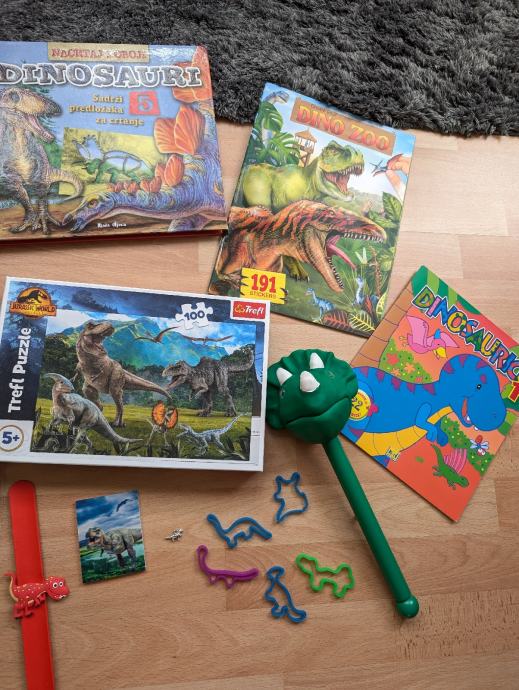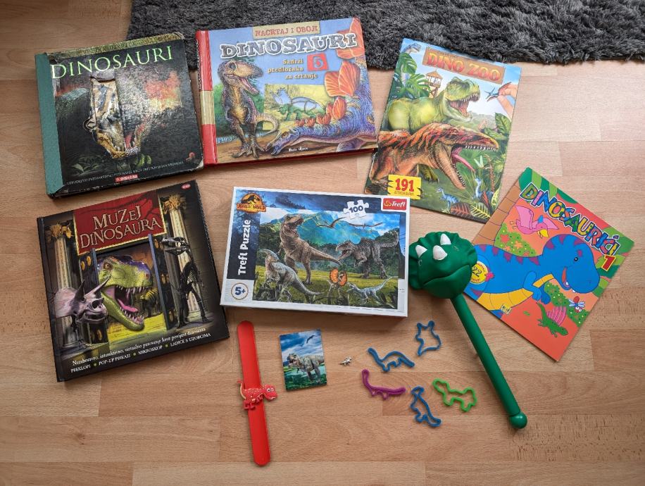 Dinosauri veliki komplet: knjige, slikovnice, puzzle, narukvice, lutka