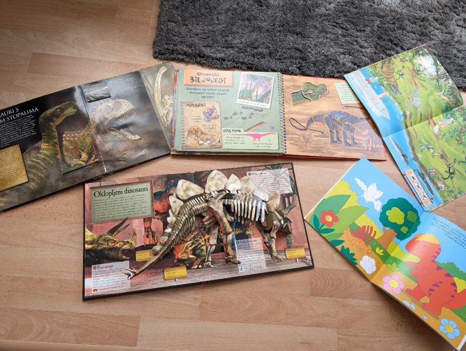 5. Dinosauri interaktivno putovanje kroz pretpovijesna vremena, s pop up prozorčićima, ima neka oštećenja, ali se može čitati - poklanjamo