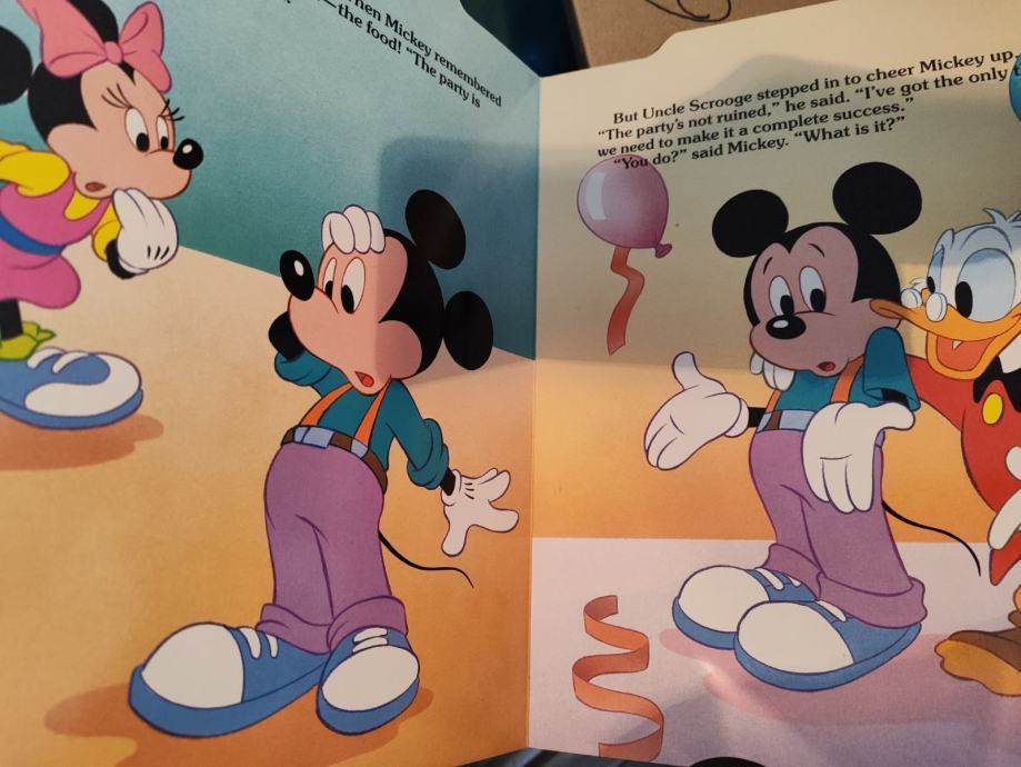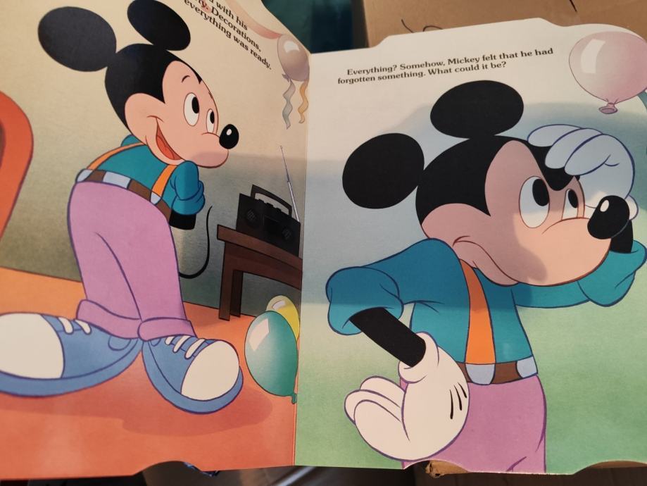 Celebrate with Mickey Mouse in the Vintage 1989 board book *Mickey's Party*. This charming hardcover features vibrant illustrations and a delightful story, making it a perfect addition to any child’s bookshelf. With its sturdy design and classic Disney magic, it's an ideal book for young readers to enjoy and cherish.