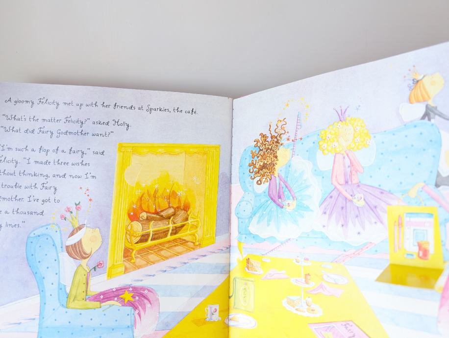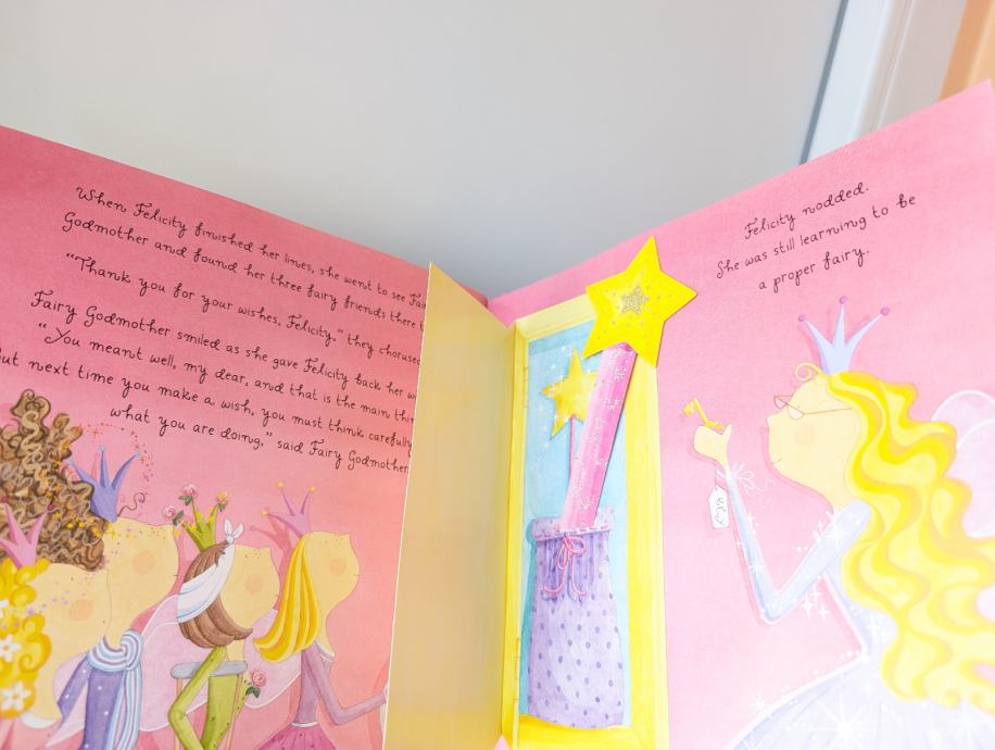 2. Felicity Wishes - Mix-ups and Magic with Pop-ups and Flaps, tvrdi uvez, 24 str., prekrasna, vrlo posebna slikovnica s puno prozorčića, povlačenja, dijelova koji se okreću, čarobni štapić se može izvaditi, jako zabavna, sa šaljivim, divnim ilustracijama.
