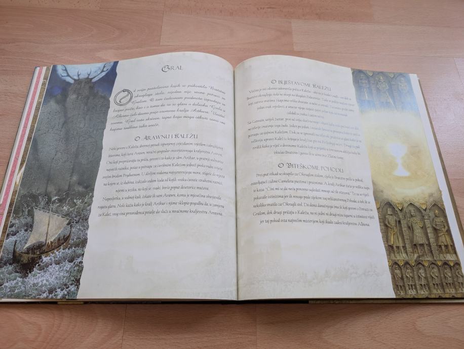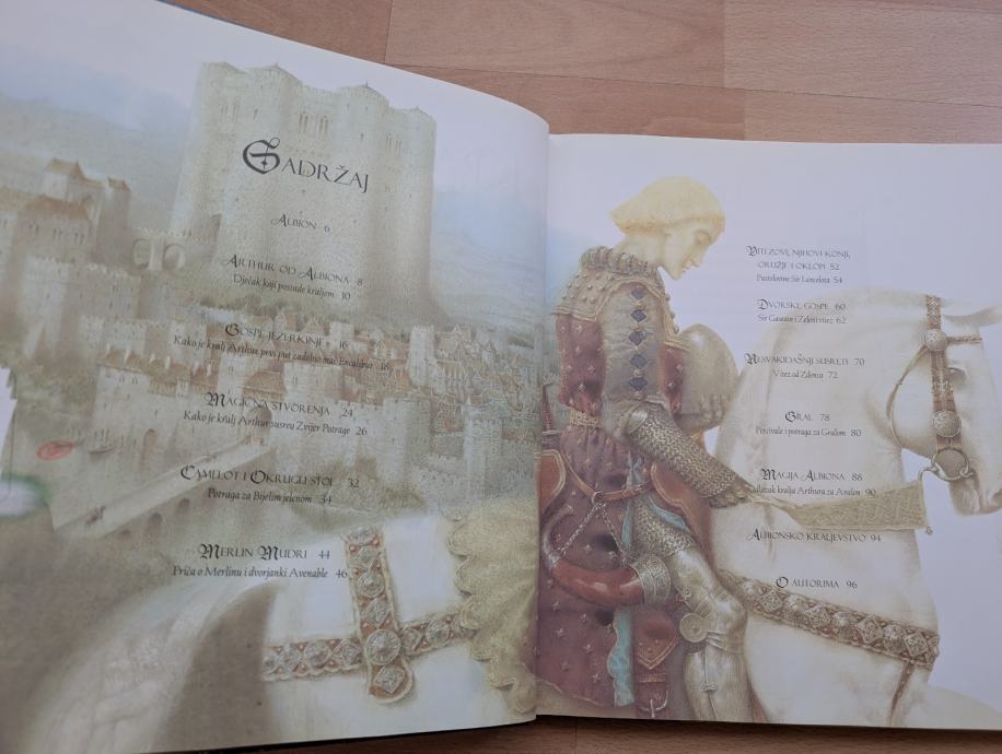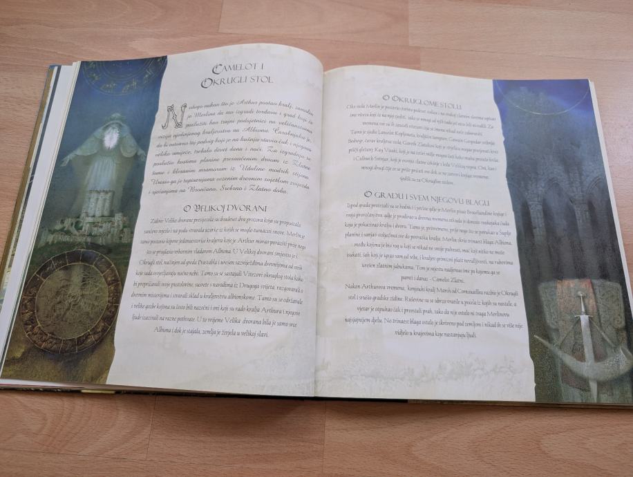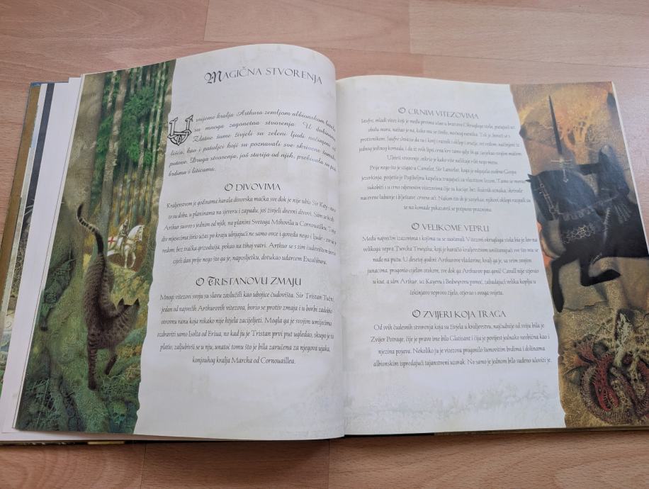 Tko nije čuo za kralja Arthura, Merlina i vitezove Okruglog stola? Ali znate li tko su Gospe jezerkinje, kako je kralj Arthur zadobio slavni mač Excalibur, koje su sve zvijeri i magična storenja nastavale drevni Albion, Arthurovo kraljevstvo? Svake večeri na dvoru kralja Arthura ispredale su se priče o viteškim pothvatima, čarobnim susretima i neobičnim događajima, a sve to možete pronaći u ovoj prekrasno ilustriranoj knjizi koja će vas odvesti u drevni svijet hrabrosti, izazova, časti i magije.