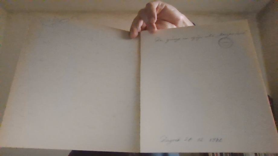 KORICE IMAJU OŠTEĆENJA, PREGIBE I MRLJE, MANJI TRAG KEMIJSKE OLOVKE NA PREDNJOJ KORICI, NATPISI KEMIJSKOM OLOVKOM S UNUTARNJIH STRANA KORICA, POSVETA UNUTAR KNJIGE, UGLOVI KORICA SU POHABANI, RUBOVI NEKIH STRANICA IMAJU MANJA OŠTEĆENJA