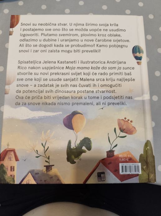 Prodajem slikovnicu Moj tata kaže da ne postoje preveliki snovi, autorice Jelene Kastaneti s ilustracijama Andrijane Rico. Radi se o lijepoj priči o snovima, maštanju i hrabrosti da sanjamo što više možemo.