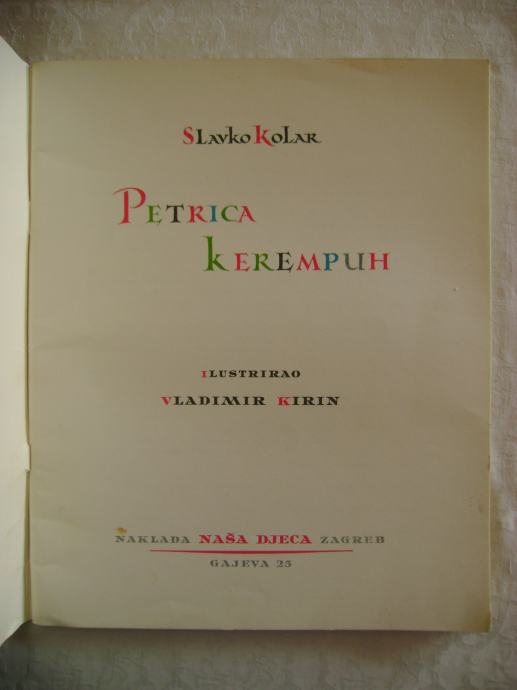 Slavko Kolar - Petrica Kerempuh - izdavač Naša djeca, Zagreb (vjerojatno) 1957. godine, 23 x 28 cm, 40 stranica, ilustrirao Vladimir Kirin.