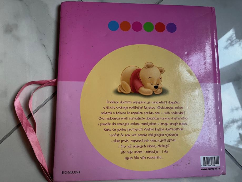 Ova radosnica prati najvažnije događaje ranoga djetinjstva i pomaže da zauvijek ostanu zabilježeni u krugu dragih osoba, kako će godine protjecati. »Velika knjiga djetinjstva« vraćat će nam već pomalo izblijedjela sjećanja i slike prvih, neponovljivih dana djetinjstva.