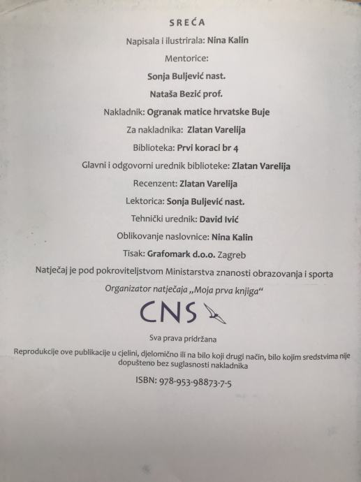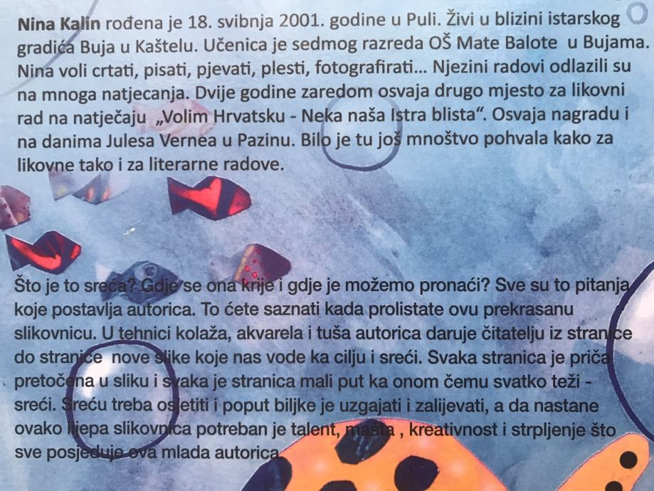 Sreća - slikovnicu napisala i ilustrirala Nina Kalin, učenica 7.razred