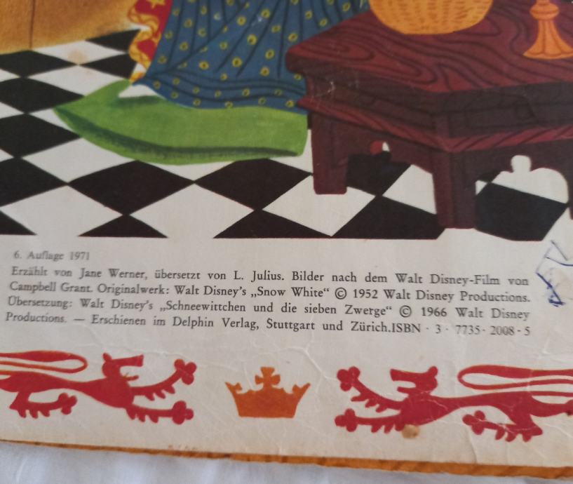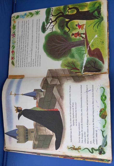 Velika stara slikovnica na njemačkom jeziku u lošijem stanju, uglavnom oštećenja po rubu u sredini i na zadnjoj strani u donjem desnom uglu fali komadić papira,sve vidljivo na slikama