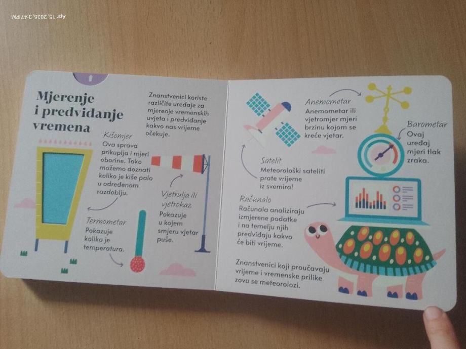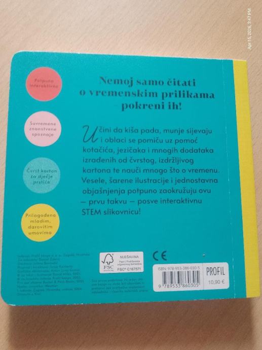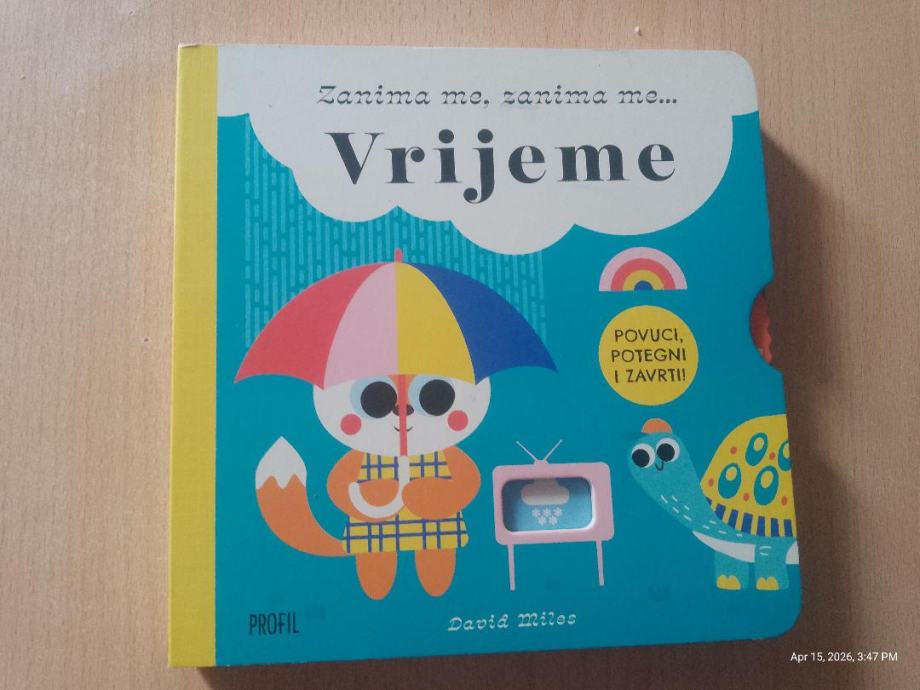 Serija edukativnih knjiga za djecu Zanima me, zanima me : VRIJEME , izdavač Profil. Novo, nekorišteno. Knjiga je interaktivna, dijelovi se pomiču . U dućanu košta 10.90 eura. Prodajem za 5 eura + poštarina.