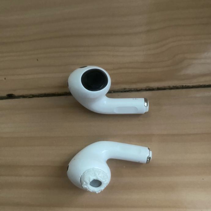 Airpods 2 Pro, slusalice NISU ostećene,vrh od uha je ostao u slusalici kako mozete vidit po slici, slusalice rade kao nove i stanje je super. Vrh od uha se pokusao izvadit te se ogulilo, to mozete odnit u APPLE trgovinu i oni ce vam to popravit besplatno.