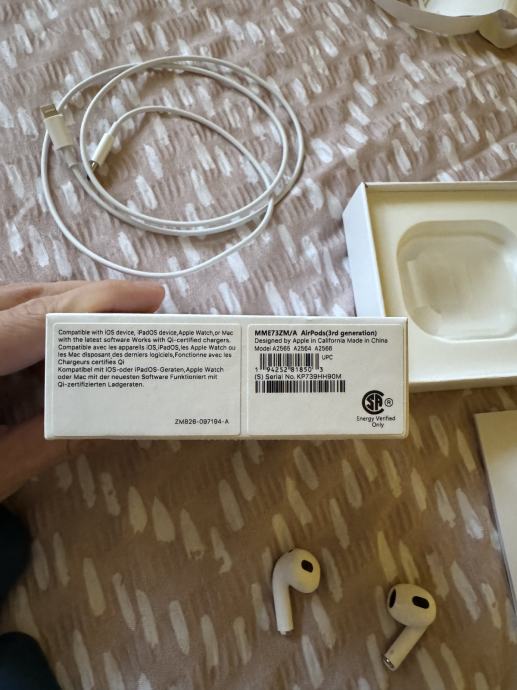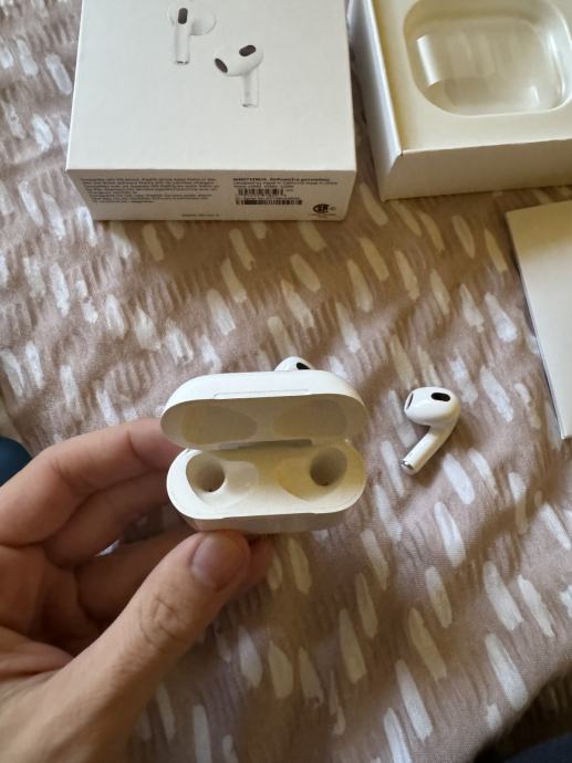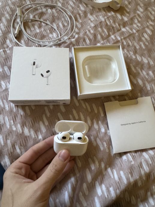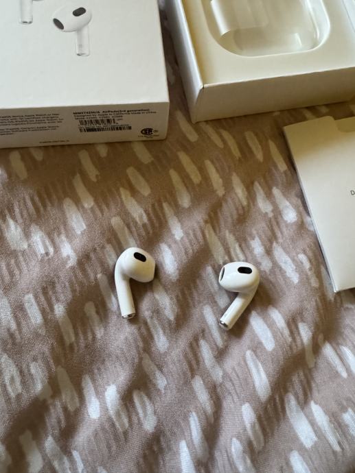 Prodajem AirPods 3 gen, korištene godinu dana. Kao nove su, imaju sitnih tragova korištenja, bile su u silikonskoj maskici. Razlog prodaje, kupnja AirPods 4 gen. Uz slušalice dolazi i kabel za punjenje, te mogu dati i silikonsku zaštitnu masku. Javiti se porukom ili pozivom na 0989249080.