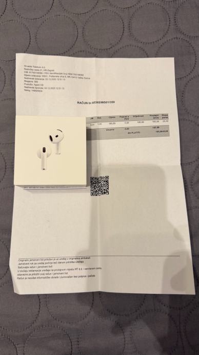 Prodajem Airpods 4 ANC slušalice kupljene 3.12.2025. Slušalice su doslovno otvorene, izvađene iz kutije, upadene s uređajem i isprobane te vraćene nazad jer mi nažalost nikako ne odgovaraju za uši samim oblikom.