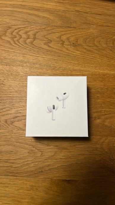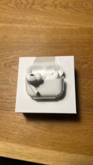 Nove slušalice Airpods Pro 2. generacija. Jednom otvorene za provjeru ispravnosti. Dolaze s USB-C kabelom za punjenje i 8 silikonskih nastavaka. Potpuno su ispravne.