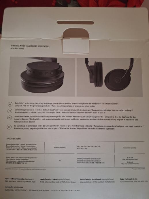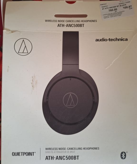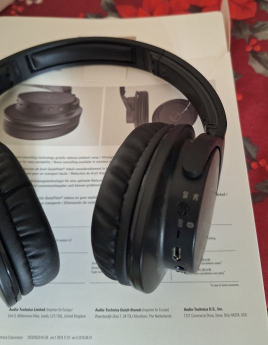 Bezicne Audio Technica Noise-cancelling slusalice. 40 mm driver, sklopive, baterija do 20 sati. Skoro nekoristene