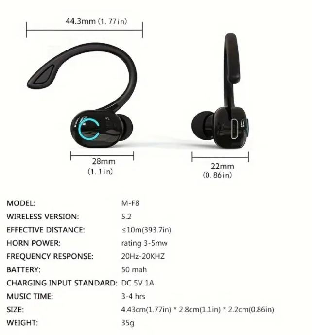 BEŽIČNA JEDNOSTRUKA SPORTSKA SLUŠALICA ZA DESNO UHO BLUETOOTH BIJELA