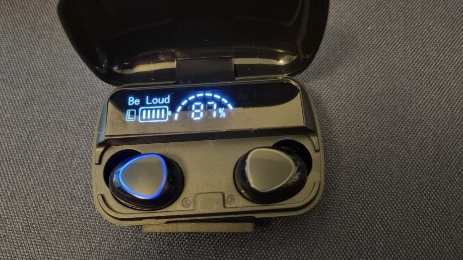 Prodajem potpuno nove bežične slušalice s praktičnim kućištem za punjenje i digitalnim pokazivačem baterije.