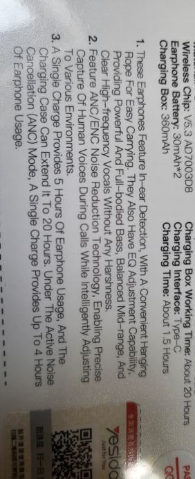 3. Jedno punjenje omogućuje 5 sati korištenja slušalica, a kutijica za punjenje može to produžiti na 20 sati. U aktivnom načinu poništavanja buke (ANC načinu), jedno punjenje omogućuje do 4 sata korištenja slušalica.