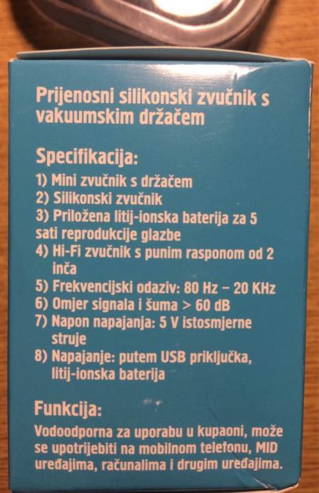 Cockta nove slušalice s čak 3 nastavka zajedno sa prijenosnim silikonskim zvučnikom s vakuumskim držačem i pripadajućim žicama (za punjenje i za spojiti mobitel/računalo...)