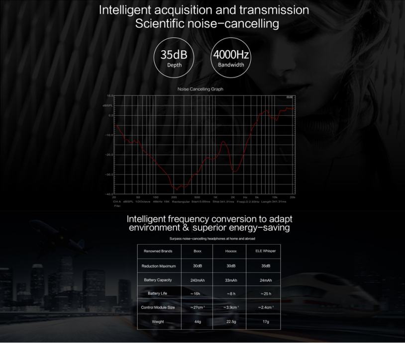 Elephone ELE Whisper slušalice, aktivna izolacija buke, NOVO