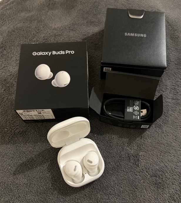 Prodajem Samsung Galaxy Buds Pro bežične slušalice u bijeloj boji. Dolaze s kućištem za punjenje i USB kabelom, sve u originalnom pakiranju.