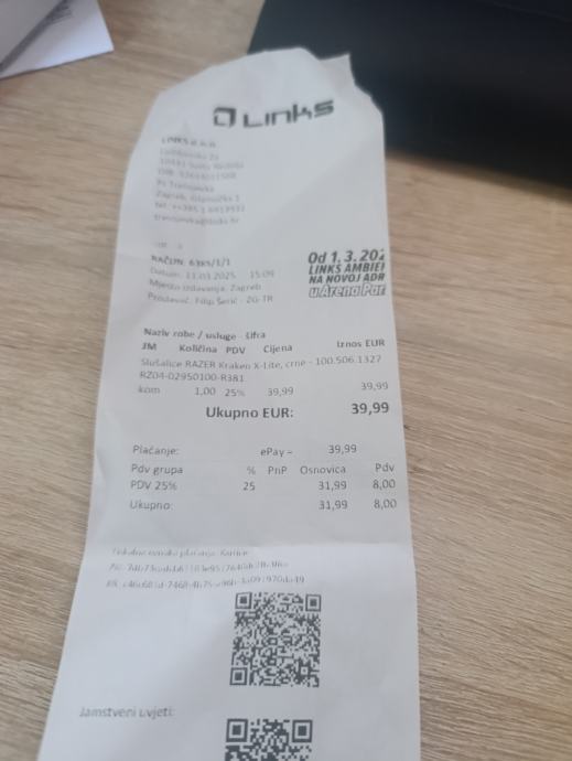 Prodajem nove slušalice Razer Kraken X lite, kupljene u Linksu u 3. mjesecu, plaćene 39,99€