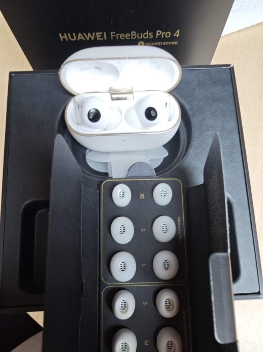 FreeBuds Pro 4, bijele, jedne od najboljih slušalica na tržištu, odličan zvuk i ANC, rade s Androidom i iOS-om.