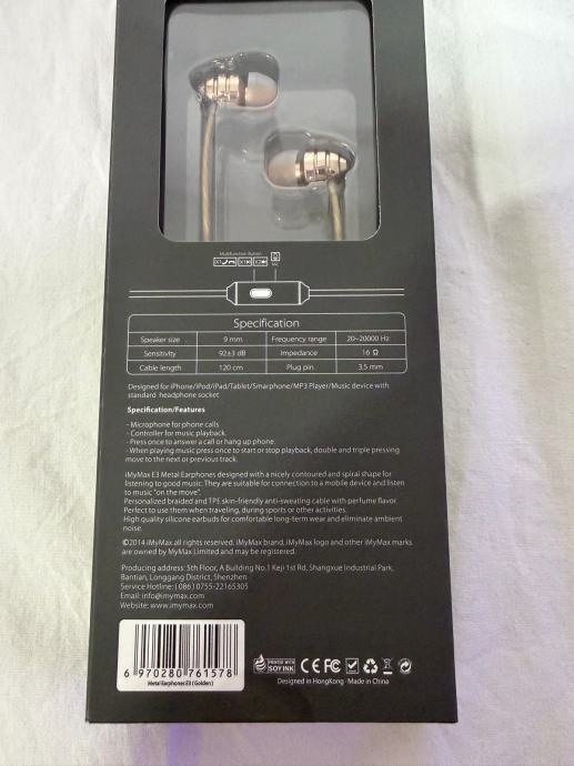 Prodajem nove iMyMax E3 Metal slušalice.