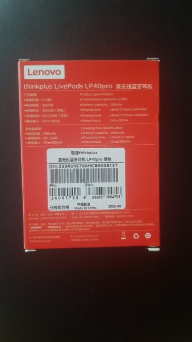 Prodajem Lenovo LP 40 Pro crne bluetooth slušalice. Nove zapakirane bežične TWS sa podrškom za igre i glazbu. Otpornost na vodu IPX5 i prašinu. Imaju modificirani gaming čip sa niskom latencijom za prednost u igrama, a dodirne smart funkcije lako omogućuju prebacivanje pjesama i voice asistenta. AAC i SBC audio codeci su ugrađeni. Baterija ima 250mAh, punjač može napuniti 3-5 puta slušalice kapaciteta 40mAh za gaming do 20 sati korištenja. Svaka slušalica traje do 5 sati s jednim punjenjem. Bluetooth 5.1 tehnologija ugrađena dometa do 10 metara.Zvuk je HiFi kvalitete stereo s koncertnim efektom koji stvara efekt prostornog ozvučenja i snažnog bassa s ugrađenim mikrofonom u obje slušalice za jasne pozive. Obje slušalice imaju smart touch kontrole s pristupom funkcijama kao play/pause/skip music, podešavanje glasnoće, poziv i aktivacija Siri. Povezive su sa svim uređajima Windows, Android, iOS.
