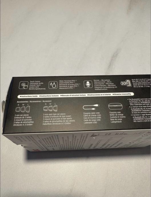 In-ear slušalice JVC HAEC25TBU lagane i kompaktne slušalice otporne na vodu. Omogućuju ti da čuješ okolni zvuk korištenjem jednog uha (lijevog ili desnog) ili uključenih otvorenih slušalica što je idealno za aktivnosti na otvorenom. Osiguravaju dugotrajnu reprodukciju do približno 30 sati s ugrađenom baterijom i kućištem za punjenje.