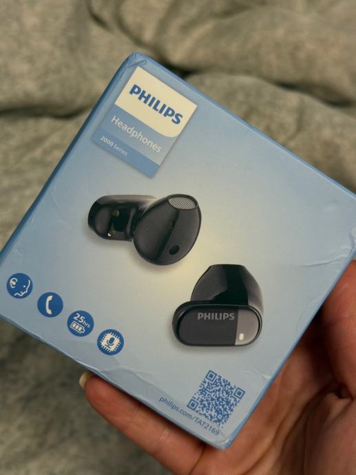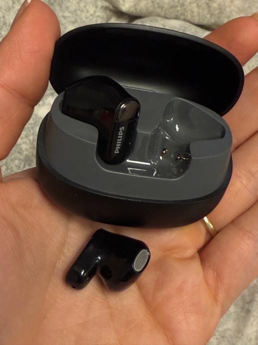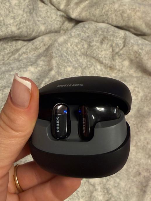 Prodajem nove Philips bežične slušalice u crnoj boji. Slušalice dolaze s kućištem za punjenje koje omogućuje praktično skladištenje i punjenje u pokretu. Uključen je USB kabel za punjenje te upute za korištenje. Kompaktan dizajn i udoban fit čine ih pogodnim za svakodnevnu uporabu.