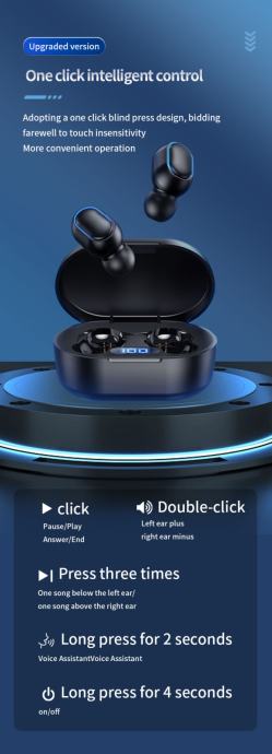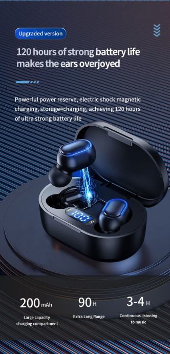 Slušalice 50 LED stereo TWS Bluetooth BT 5. Android bank 200mAh crne