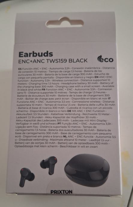 Prodajem nove Prixton Earbuds ENC+ANC TWS159 u crnoj boji. Bežične slušalice s aktivnim poništavanjem buke (ANC) i ENC funkcijom. Baterija slušalica iznosi 30 mAh, a kućište za punjenje ima bateriju kapaciteta 300 mAh. Autonomija slušalica je oko 3,5 sata, a punjenje kućišta traje oko 1,5 sat. Bežično povezivanje na udaljenosti do 10 metara. Kućište dolazi s malim ekranom koji prikazuje razinu baterije.