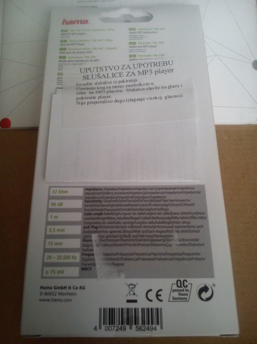 Slušalice Hama HK-249 NOVE , NEKORIŠTENE !!