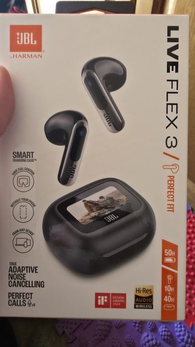 Prodajem nove JBL Live Flex 3 bežične slušalice. Radi se o true wireless modelu koji dolazi s pametnim kućištem za punjenje s ekranom. Slušalice podržavaju True Adaptive Noise Cancelling tehnologiju te Hi-Res Audio i Hi-Res Wireless certifikaciju. Trajanje baterije iznosi do 10 sati na samim slušalicama, a uz kućište ukupno do 50 sati. Potpuno nove, niti jednom korištene.