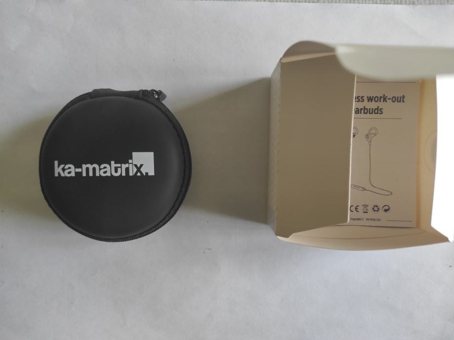 Slušalice su bežične, sportskog tipa s kukicama za uši, dolaze s dodatnim nastavcima za uši različitih veličina te s okruglim tvrdom futrolom marke Ka-Matrix za lakše prenošenje i čuvanje. U kompletu je i bluetooth zvučnik.