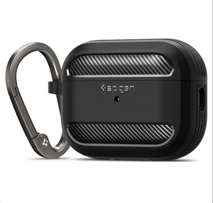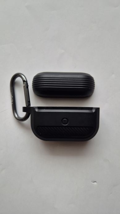 Prodajem rabljenu Spigen zaštitnu kutijicu za Airpods u crnoj boji. Kutijica je izdržljiva, dolazi s praktičnim karabinerom za lako nošenje i sigurno pričvršćivanje. Silikon.