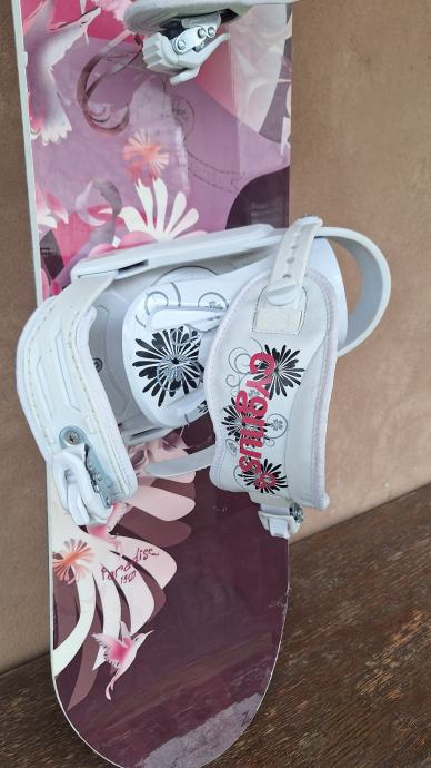 Koristen par sezona po par dana, daska u super stanju, prodajem s vezovima, zaljepljen je i Burton stoper