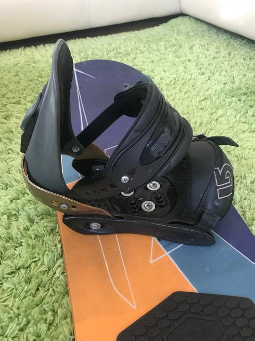 Na njega su montirani Burton Ray vezovi, s dodanim toe cap strapom (imam i originalne over the toe strapove). Veličina vezova je S/M – za buce 38-43.