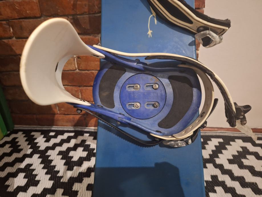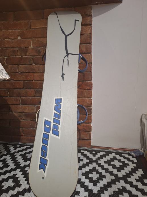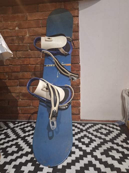 Snowboard daska s vezovima. Malo je oštećen po rubu i podlozi zbog korištenja. Dugačak 120 cm.