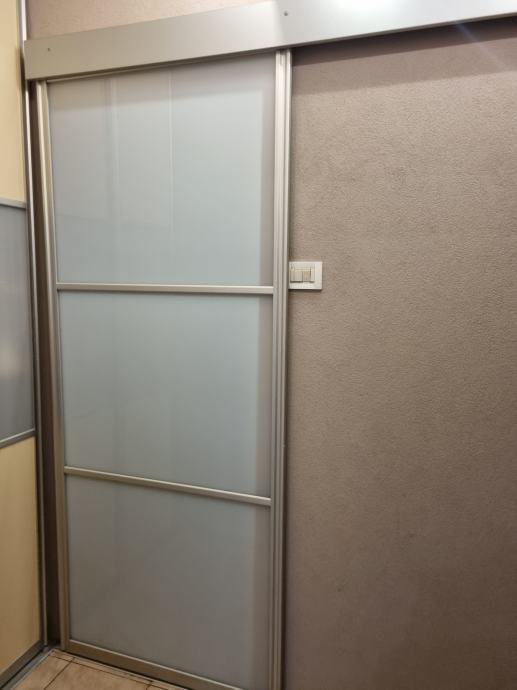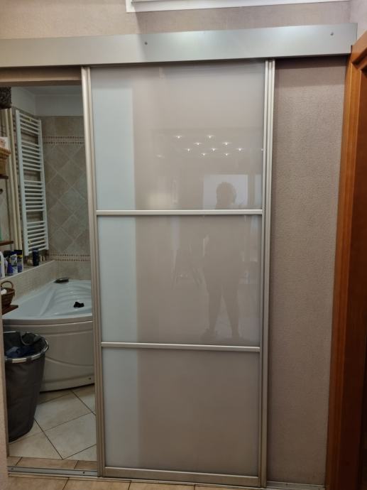 Klizma vrata pleksiglas, alumimijski okvir, dimenzike 88x 208cm, sa zidnom i podnom vodilicom.