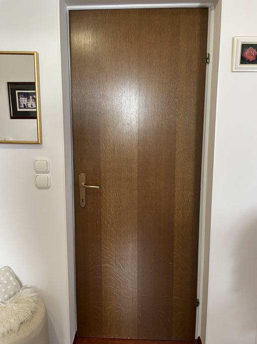 Prodajem sobna drvena vrata, imitacija hrasta, očuvana, s kvakom, bez štoka, ukupno 2 komada - jedna su šira, a jedna uža (jedna po 85 x 200 cm i jedna po 75 x 200 cm), 35 e po komadu.