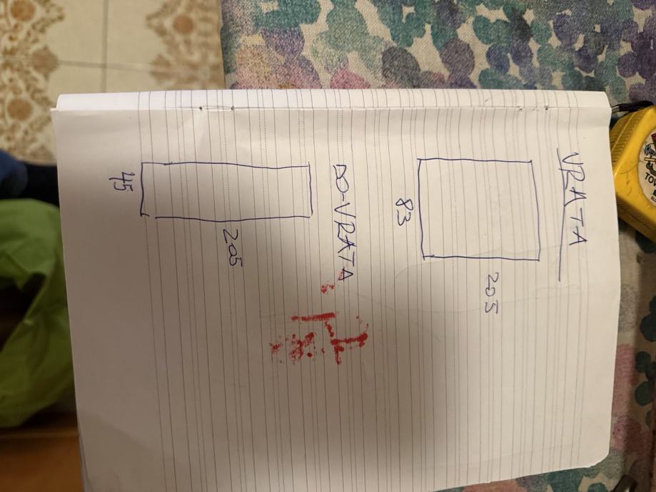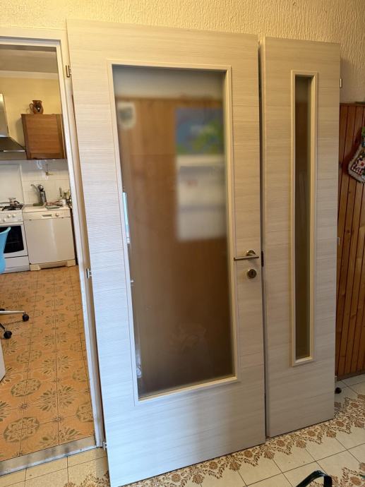Sobna dvokrilna vrata koja su ukupnih dimenzije 205 cm visine i širine 128 cm. Od toga samo vrata 205cm sa 83cm