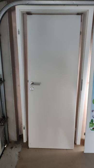 Sobna vrata sa lajsnama za zid 14 cm. Vrata su masivna bijele boje. Slijepi dovratnik.