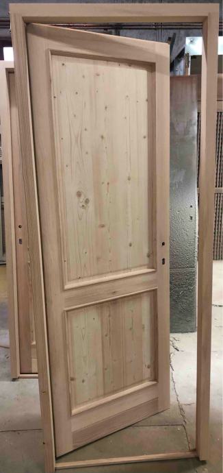 Prodajem nova sobna vrata dimenzija 80x203 cm (krajnja dimenzija okvira) izrađena od punog drva jela-smreka. Vrata dolaze sa dovratnikom(štokom)+brava,a površina je neobrađena, što omogućuje bojanje ili lakiranje po vlastitom izboru. Dizajn je klasičan, s dva istaknuta pravokutna polja na krilu vrata.