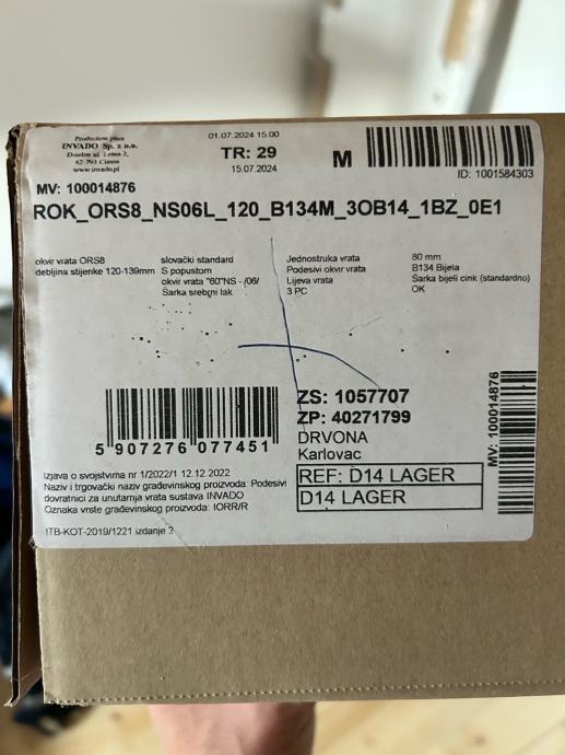 Nova bijela sobna vrata sa dovratnikom, lijeva, 60cm prodajem (bez kvake)